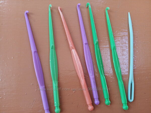 7) Гачечки для в"язання і голка циганська для шиття пласмасові 6+1 шт.