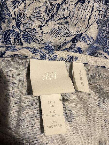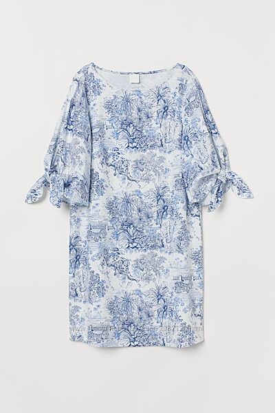 Розмір eur 36 (довжина 87 см,пог 47 см,поб 51 см.)Коротке плаття з плетеної тканини з рукавами довжиною 3/4 і манжетами з відрізком і зав’язками. Ніжно закруглений поділ. Без підкладки.