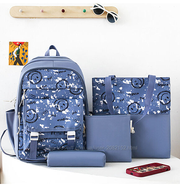Практичный набор 4 в 1 для школы, университета или повседневного использования.В комплект входят: вместительный рюкзак, сумка на плечо, косметичка и пенал.