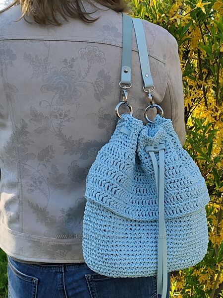В наявності сумочка з рафії нереально красивого відтінку неба.Це незамінний аксесуар на теплу пору року. Сумочка дуже легка і практична. Має денце, ручки та затяжки зі шкіри. Оздоблення з рюшу надає особливої ніжності та вишуканості виробу.