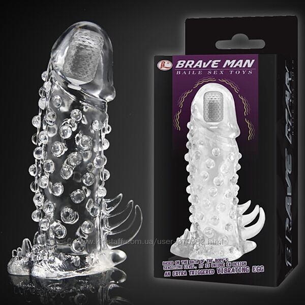 Подробное описание: Стимулирующая вибронасадка презерватив с пупырышками и усиками Brave Man