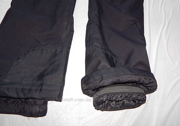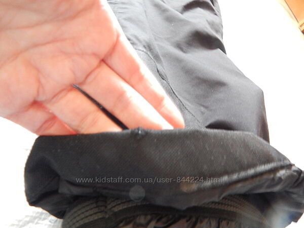 Низ штанин на резинке, не расстегивается, внутри резиновое усиление