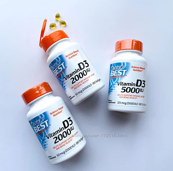 Подробное описание: Doctor´s Best, вітамін D3, 50 мкг 2000 МО, 180 капсул