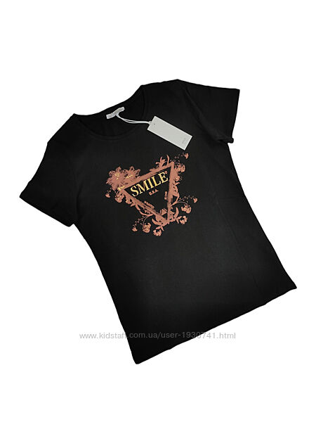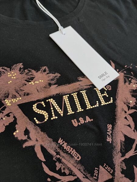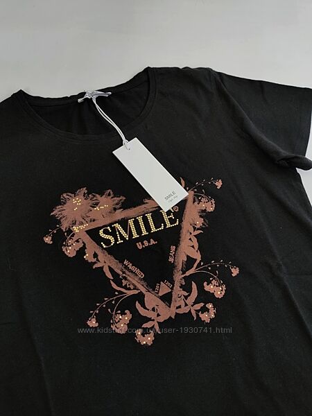 Подробное описание: Черная футболка с принтом и с надписью Smile италия S, M 44, 46