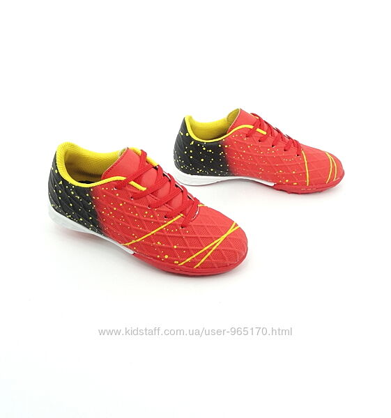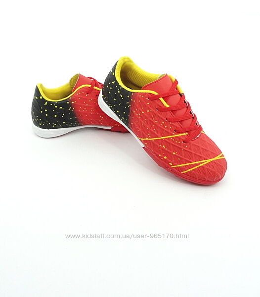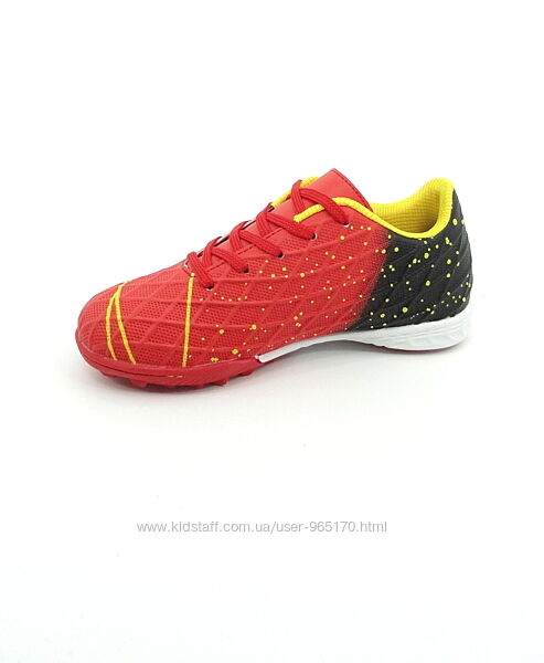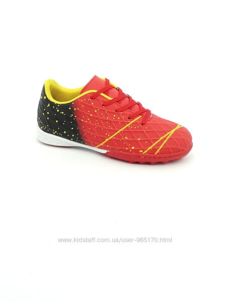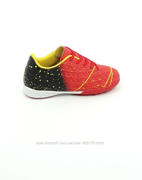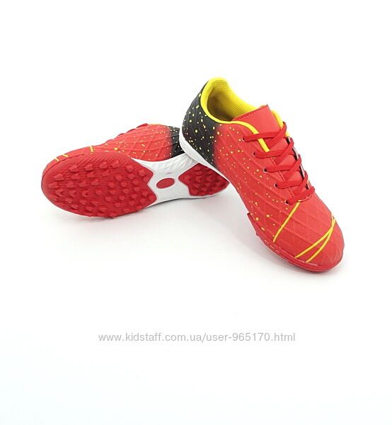 Дитячі стоноги взуття для футболу, для гри на штучних і природніх твердих покриттях. Верх моделі - штучна шкіра, підошва з міцної гумової суміші, носок прошитий. Спеціальне розташування шипів значно підвищує стійкість під час гри, забезпечує відмінне зчеплення навіть з вологими поверхнями, максимально розподіляє навантаження на стопу.