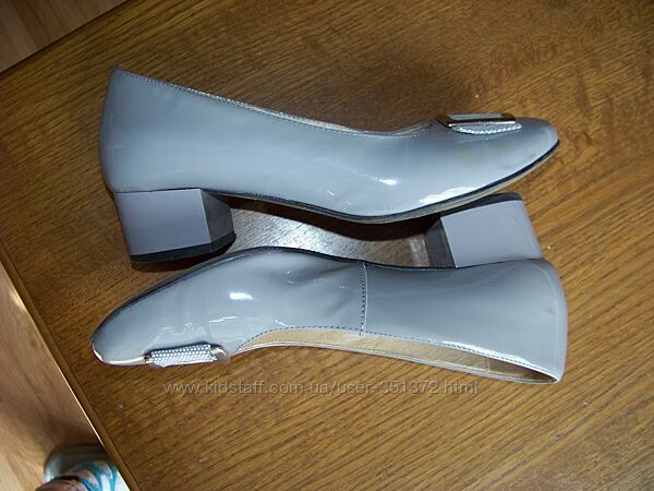 Туфли серые лаковые натуральные на небольшом устойчивом каблуке 36р Steizer