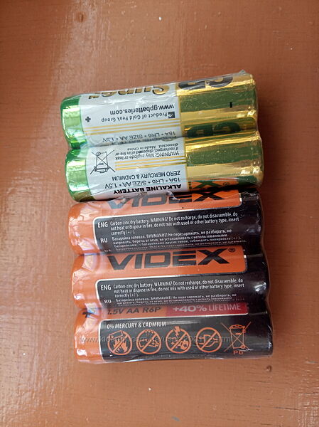 - 6 батарейок Videx R6P 1.5 V. Виготовлені 09/2023. Термін до 09/2026. Ці батарейки в прозорих плівках по 3 шт ( були по 4 шт, але по 1 батарейці вийнято з кожної плівки ).