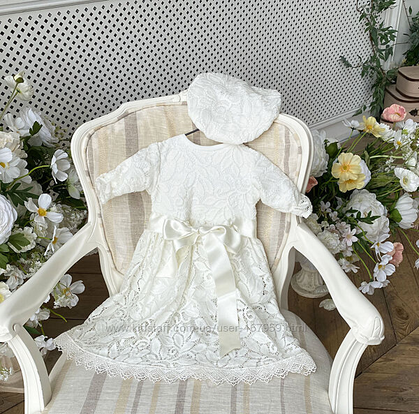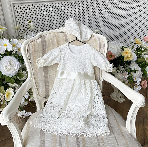 Подробное описание: Нарядное крестильное платье и берет для девочки новорожденной 56 62 68 74 8