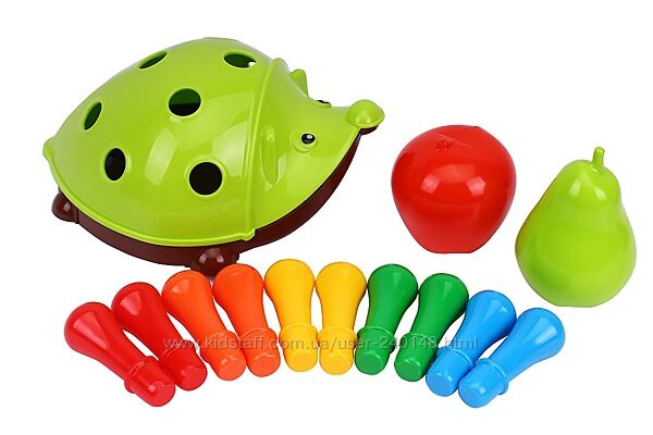 Набір складається з яскравого їжака, 10 кольорових голок, яблучка та груші.