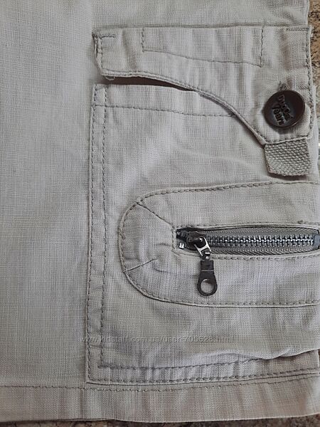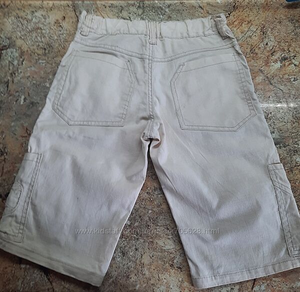 Продам стильные летние бриджи для мальчика 7-8лет, рост 128-134см. Фабричный Китай. Хлопок 100%. Есть утяжка в поясе. Б/у в отличном состоянии. Замеры в нерастянутом состоянии: талия=31-32см; бёдра=39-40см; глубина посадки по переду =20см; глубина посадки по спинке=29см; длина по внутреннему шву=29см; длина по наружному шву с поясом=47см; ширина штанины внизу=20см.80грн. Днепр.
