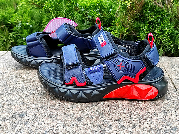 Подробное описание: Кожаные босоножки р-р 26,28 синие с красным, фирма gfb канарейка