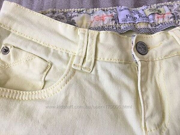 Джинсы, штаны Fresh Made Размер указан S, идут на 42-44р. Цена 150 грн. Состояние отличное, одеты 2 раза. Красивый лимонный цвет, тянутся, качество супер. посадка не высокая. Замеры: ПОТ 36см ПОБ 48 см Посадка 19/30 см Длина 99/78 см