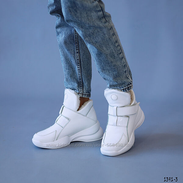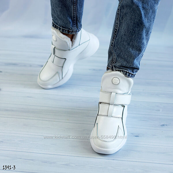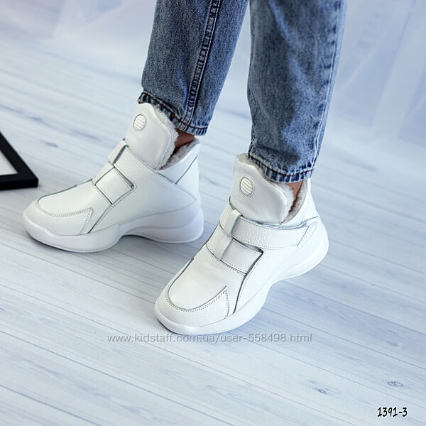 Подробное описание: Жіночі білі зимові черевики з липучкою