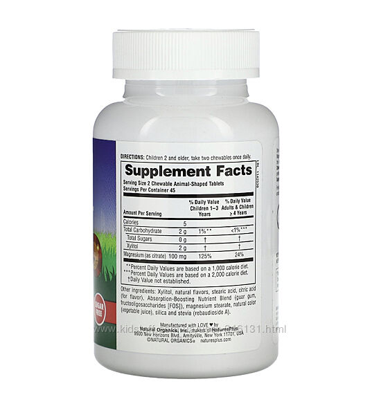 Отличный магний для детей, представленный в форме цитрата, а как известно цитрат магния является органической и хорошо растворимой формой магния, что в значительной мере обуславливает его высокую биоусвояемость, кроме того в данной добавке абсолютно отсутствует сахар, а добавлен ксилит, что благотворно сказывается на зубках деток.