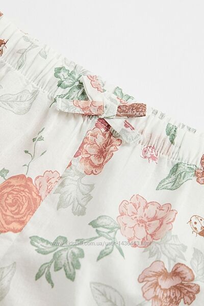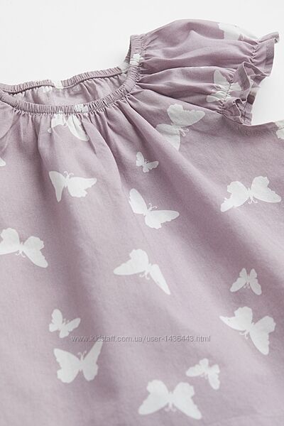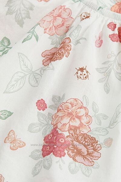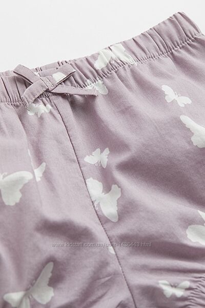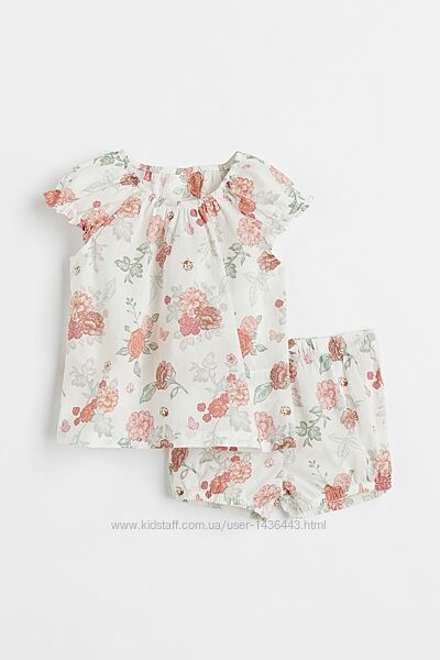 Повітряний комплект з бавовняної тканини, що складається з розширюваного верху та пухких трусиків. З гумовим вдавленням у верхній частині горловини, короткими пухкими рукавами у формі реглан і вузьким кінчиком пальця з воланами. Пухкі трусики з гумовими вдавленнями, декоративний бантик спереду, вузький прогумований поділ з воланами.В наявності розміри :