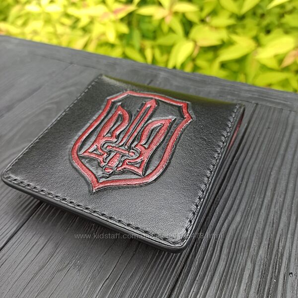 Патриотическая надпись с лицевой стороне и тризуб с обратной выполнены в технике ручного тиснения.