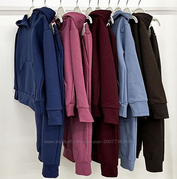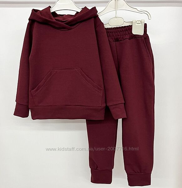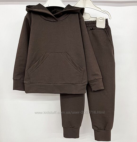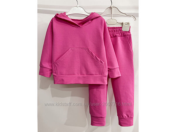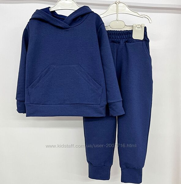 Костюм для хлопчика та дівчинки (джемпер з довгим рукавом, низ та рукав під манжет з основного полотна, є капюшон, спереду нашита кишеня + штани під манжет на широкій резинці), практичний костюм, якість полотна дуже класна, не кошлатиться.Пошитий з хб тканини 2-х нитки, вона відрізняється особливою міцністю і еластичністю.