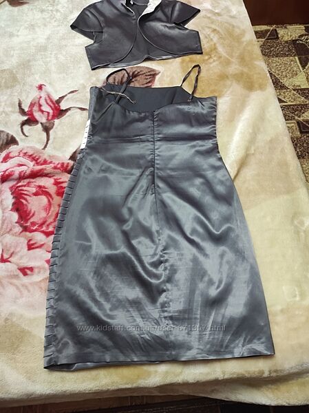 Костюм атласный, сарафан и болеро. Одето один раз на торжество. Размер 48-50, тянется. В лиф сарафана вставлен паралон и косточки, так что можно носить без бюстгальтера. Есть подкладка. Платье хорошо стройнит. На последнем фото видно небольшой дефект - незаметные утяжечки. Обмена и возврата нет