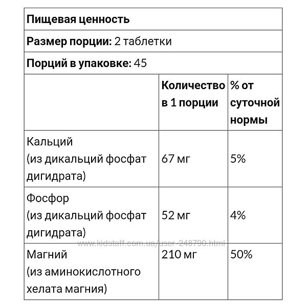- Магний (из аминокислотного хелата магния) 210 мг.