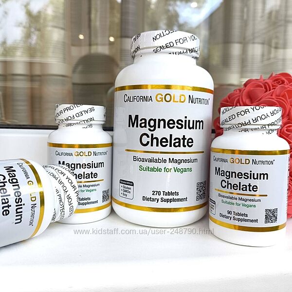 2) California Gold Nutrition Магний хелат, США, 90/270 таблеток
