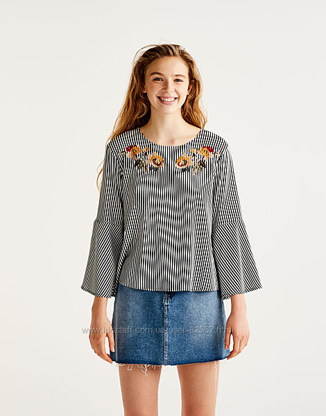 5) Фото 8-9 блузка с вышивкой Pull&Bear. размер С (подойдет на ХХС, ХС). Цветы на блузке - вышивка.