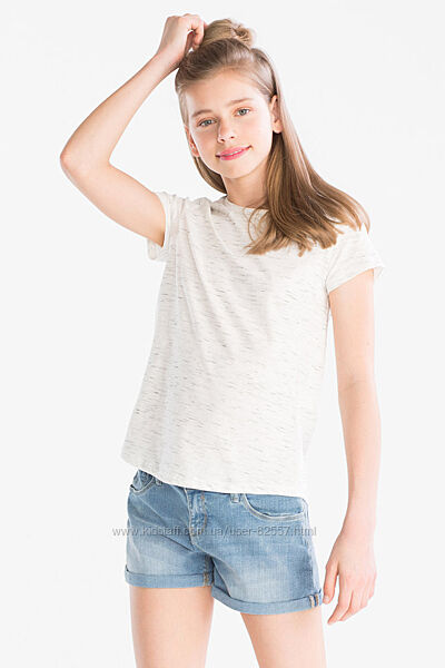3) Фото 4-5 футболка С&А 146/152 . Состав : 97% хлопок, 3% полиестер(расцветка меланж).