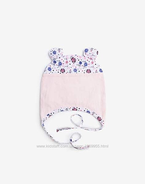 Разноцветная шапка с цветочным принтом, вышитой мордочкой и декоративными ушками создаст очаровательный образ, завязки надёжно зафиксируют шапку на голове.Состав: 100% хлопок