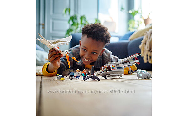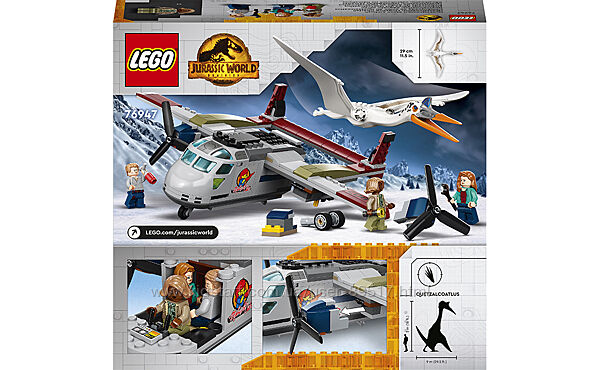 Игровой набор с динозавром — поднимайте творчество детей ввысь с набором «Кетцалькоатль: нападение на самолёт» (76947). В нем есть сборный самолёт и фигурка кетцалькоатля из фильма «Мир Юрского периода: Господство»Три минифигурки и фигурка птерозавра — в наборе есть минифигурки Оуэна Грэди, Клэр Диринг и Кайлы Уоттс, а также кетцалькоатль размером более 29 см в ширину с подвижными крыльями и щёлкающим клювомИгрушечный самолёт для приключений — кабина с местом для трёх минифигурок, вращающиеся винты, открывающийся грузовой отсек и двигатели, сделанные так, чтобы отрываться при атаке и легко присоединяться сноваИдея подарка для детей от 7 лет — этот набор станет забавным подарком на день рождения, праздник или просто без повода для детей, которые любят динозавров и самолётыМесто для мотоцикла Оуэна Грэди — самолёт имеет высоту более 9 см, длину 22 см и ширину 30 см, так что мотоцикл Оуэна из набора 76945 помещается в его грузовом отсекеПонятные инструкции по сборке — ваш ребёнок только делает первые шаги в LEGO® Ничего страшного. С этим набором из 306 деталей есть пошаговые инструкции в картинках, чтобы ребёнок мог собирать самостоятельно и уверенноСерия LEGO® Jurassic World — найдите наборы для поклонников любого возраста, чтобы воссоздавать эпические сцены из фильмов, разыгрывать оригинальные истории или просто собирать и показывать коллекционные моделиГарантия качества — все элементы LEGO® соответствуют строжайшим отраслевым стандартам, поэтому они неизменно совместимы друг с другом и всегда надёжно соединяютсяБезопасность превыше всего — компоненты LEGO® тестируются всеми возможными способами, чтобы убедиться, что они удовлетворяют самым строгим глобальным стандартам безопасности