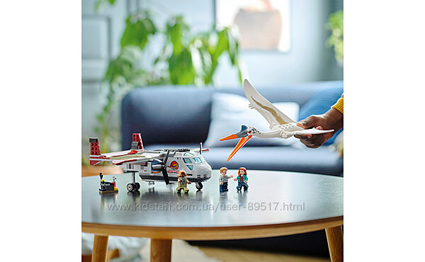 Игровой набор «Кетцалькоатль: нападение на самолёт» (76947) для детей от 7 лет, любящих динозавров, позволяет вспомнить захватывающий полёт из фильма «Мир Юрского периода: Господство». В набор входит самолёт с местом для трёх минифигурок в кабине, крутящимися винтами, открывающимся грузовым отсеком и двигателями, сделанными так, чтобы оторваться, когда нападёт подвижная фигурка кетцалькоатля (потом двигатели легко прикрепить назад).Особенности: