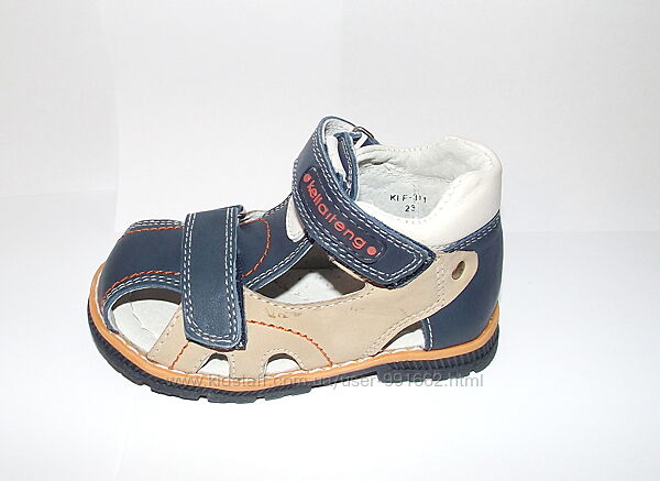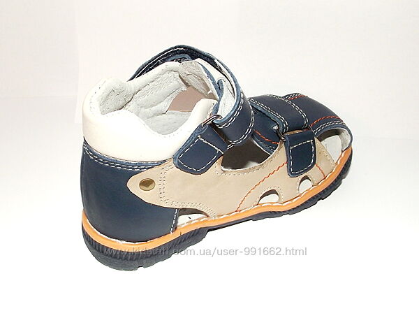 Подробное описание: Кожаные босоножки для мальчиков ортопед синие бежевые 13см