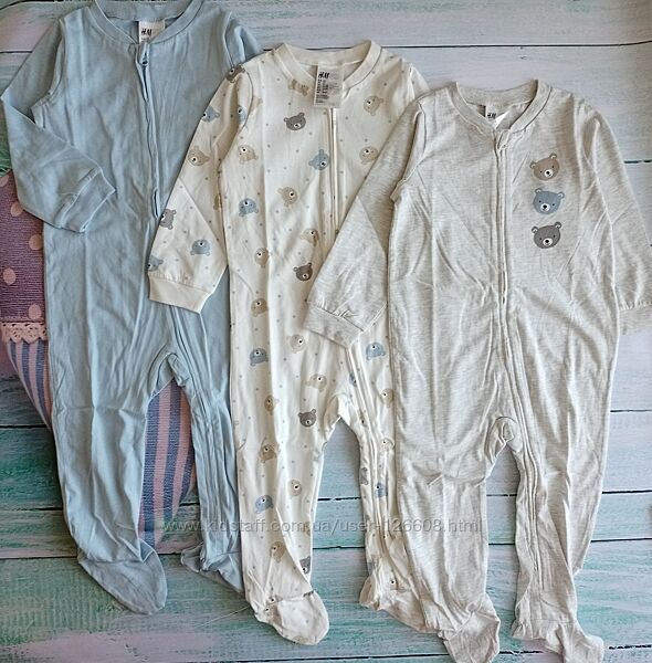 Подробное описание: Пижамы, человечки на молнии из хлопка H&M, разм. 92, 98.