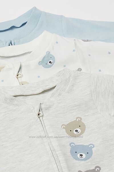 Пижамы, человечки на молнии из хлопка H&M, разм. 92, 98.