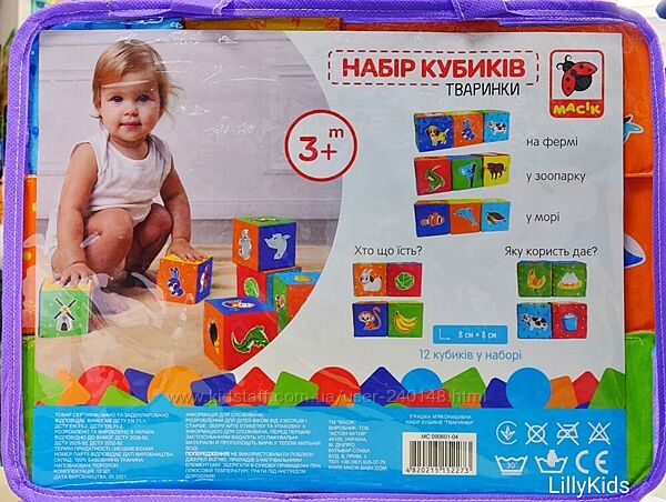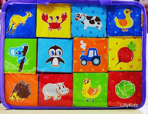 Подробное описание: Набір кубиків м´яких Тваринки, MC 090601-04, 12 шт. в наборі