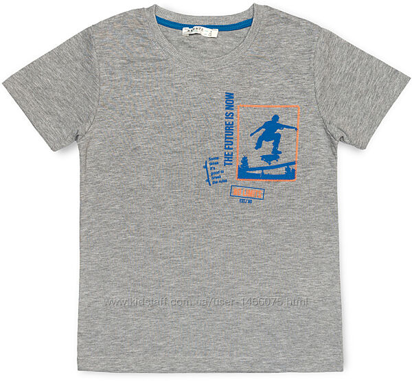 Футболка прямого покроя, с короткими рукавами и круглой горловиной, украшена спереди и на спинке стильными эффектными надписями и принтовыми рисунками на тему скейтбординга. Горловина обработана мягкой двойной трикотажной резинкой.