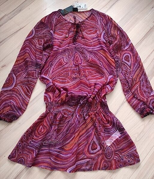 Размер С/М. Легкое, воздушное платье -туника с длинным рукавом. Рукав внизу на резиночке, можно регулировать длину. Про-во Индия.