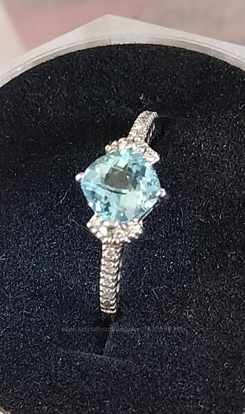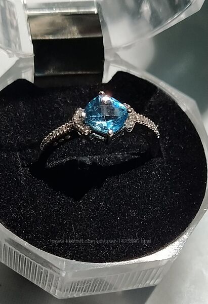 Новое. Английское милое колечко белого золота 10к (417) с ярким контрастным голубым топазом 0.95 карат (6*6мм) изящной шахматной огранки. Боковые вставки - круглые белые бриллианты (18шт) общей массой 0.10 карат и параметрами G/Si1 (2/5). Размер кольца 16, вес 1.63 грамма. Адекватная цена. Смотрите все мои объявления.