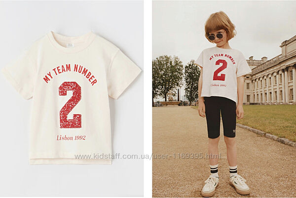 Новая футболка от Zara . Коллекция 2022года . Оригинал Zara Испания.Цвет кремовый , с пайетками . Очень красивая и качественная. Качество хлопка у Zara лучше в разы, чем у многих брендов . Не вытягиваются , не кошлатятся и долго не теряют внешнего вида . Проверено на собственном ребёнке . 100% хлопок .