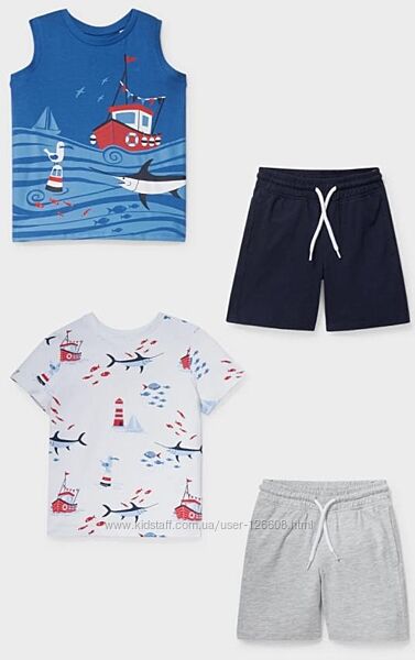 104,110. Комплект Футболка, майка и 2 пары шорт C&A. В наличии