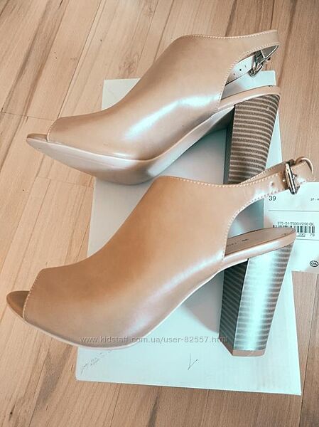 Босоножки С&A (Германия). Размер 39 (стелька 24.8 см).Цвет бежевый, кожзам. Удобный,устойчивый каблук, высота 10см.
