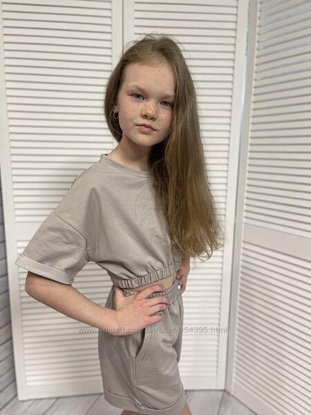 Подробное описание: Комплект літній кроп-топшорти футер турецький капучіно 128-158 розм М2036