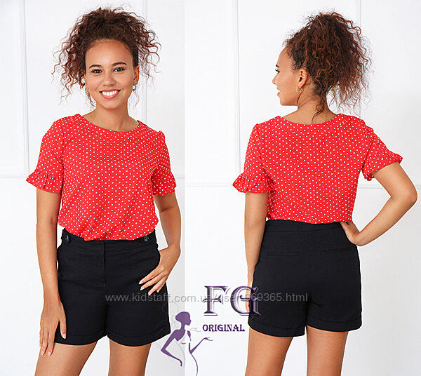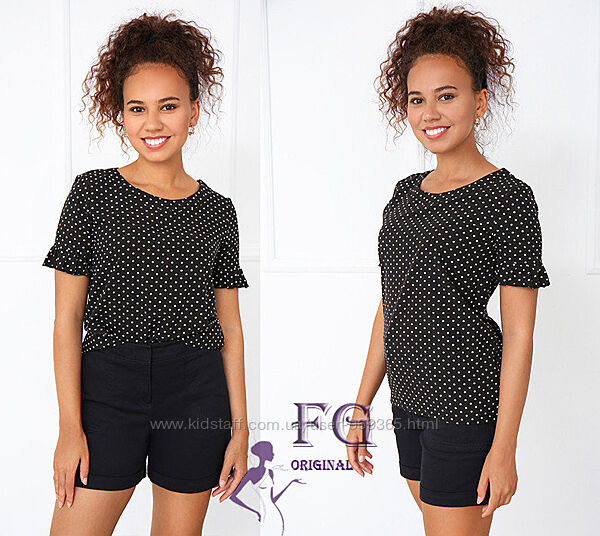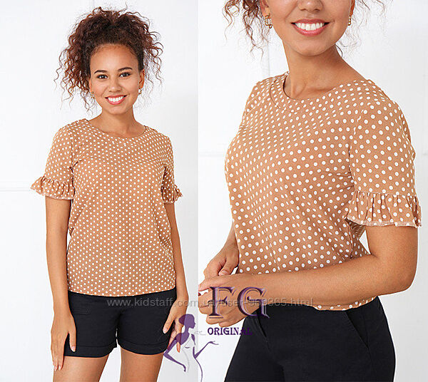 Блуза в горошек с коротким рукавом "Ненси"Код: 4250