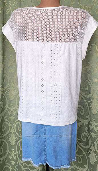 2517Блузка легкая для лета, из тонкого жаккардового трикотажа с коротким рукавом реглан, кружевные вставки, ткань тянется.