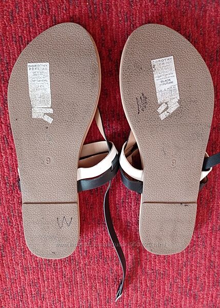 Сандалии Dorothy Рerkins, р.9 (наш 41), стелька 27 см (по шву).Лёгкие и удобные. Были обуты 1 раз (видно по подошве), мне оказались велики.