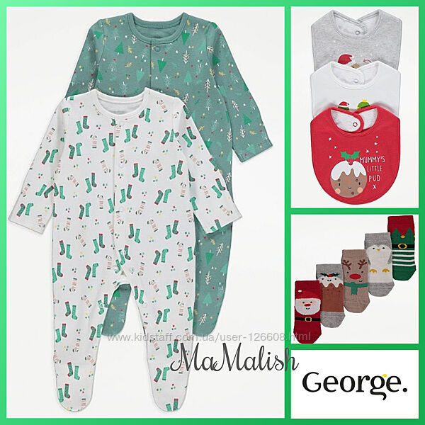12-24м. Носки Новогодние в комплекте 5 шт George. В наличии