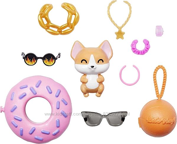 Barbie Extra Doll #13 Барби Экстра шарнирная в баскетбольном нарядеНабор с Куклой Barbie Extra в баскетбольном наряде 30 см содержит 15 предметов одежды и модных аксессуаров, в том числе домашнего питомца и аксессуары для него. У Barbie Extra ультрамодная прическа – очень длинные волнистые волосы с объемом и смелыми розовыми прядками, которые подчеркивают форму лица. Кукла смело заявляет о своем стиле с помощью фланелевой рубашки "оверсайз", блестящей баскетбольной майки-платья и черных велосипедных шорт. Сумочка, похожая на баскетбольный мяч, солнцезащитные очки с эффектом огоньков, золотые бусы и модные ботинки добавляют особой экспрессии и возможностей для разыгрывания историй. Щенок корги с милой мордашкой также экстраособенный. Для него в набор добавили забавные солнцезащитные очки и надувной круг в форме пончика.