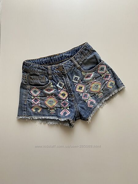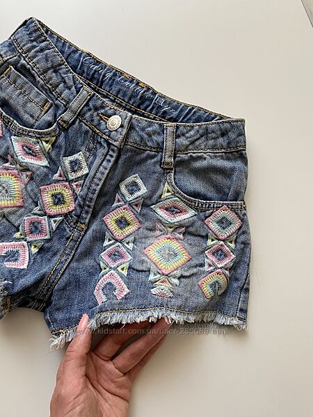 Крутые джинсовые шорты с вышивкой 10-12 лет