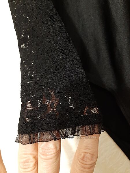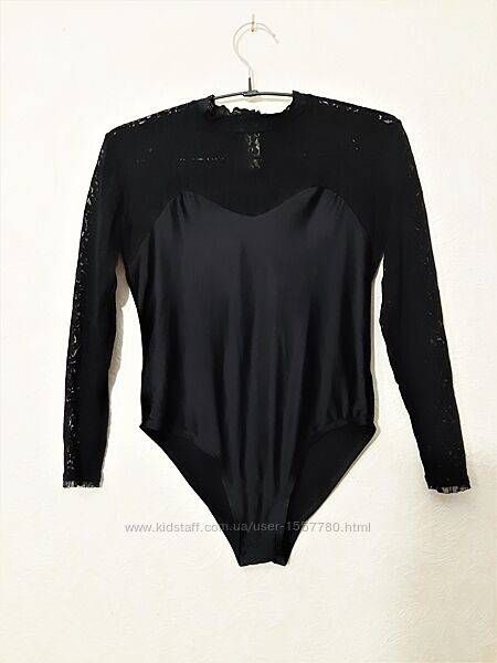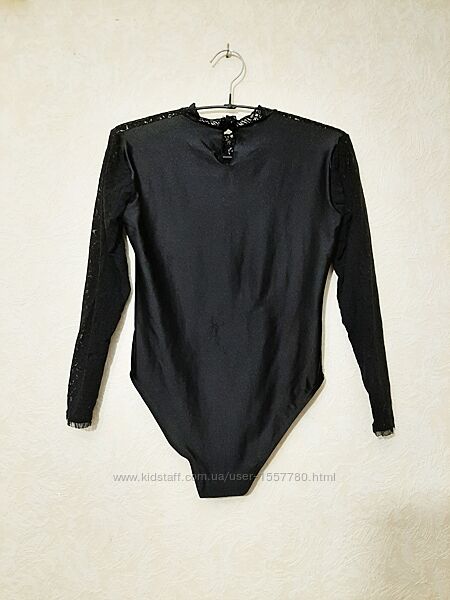 Брендовый стильный боди чёрный, эластик, кружевные длинные рукава, женский, Phildar. Китай.В хорошем состоянии.
