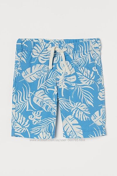 Шорты из мягкой натуральной поплиновой ткани с широкой резинкой и кулиской на талии, удобные боковые карманы.