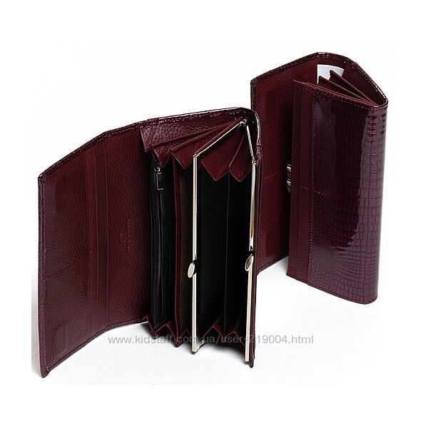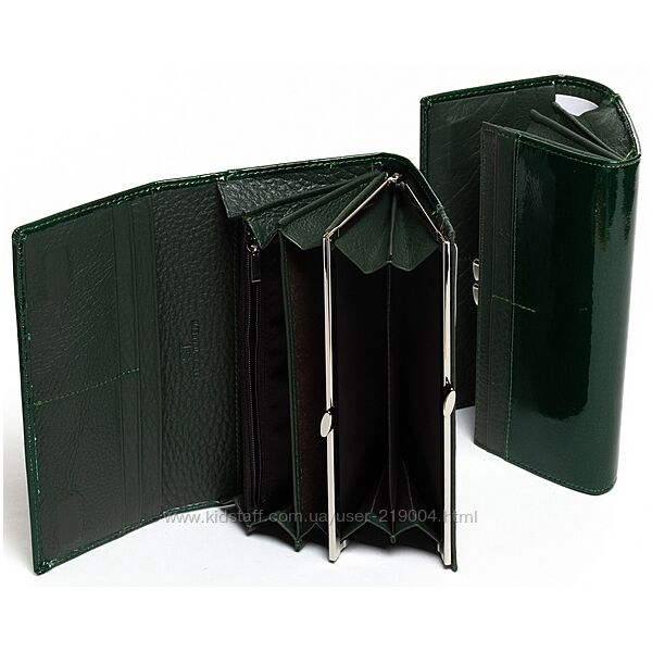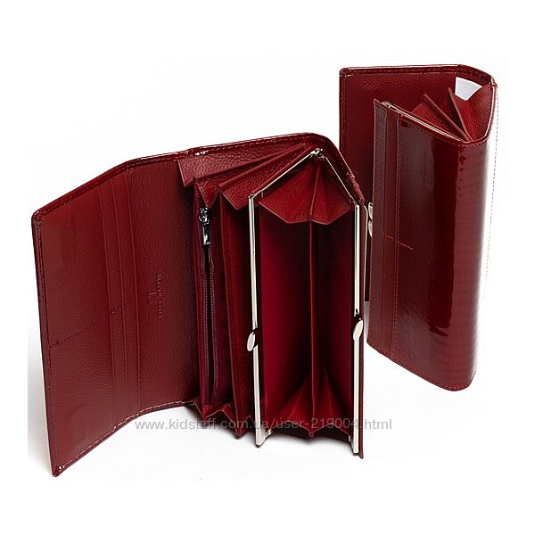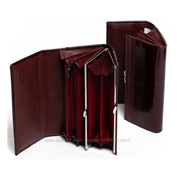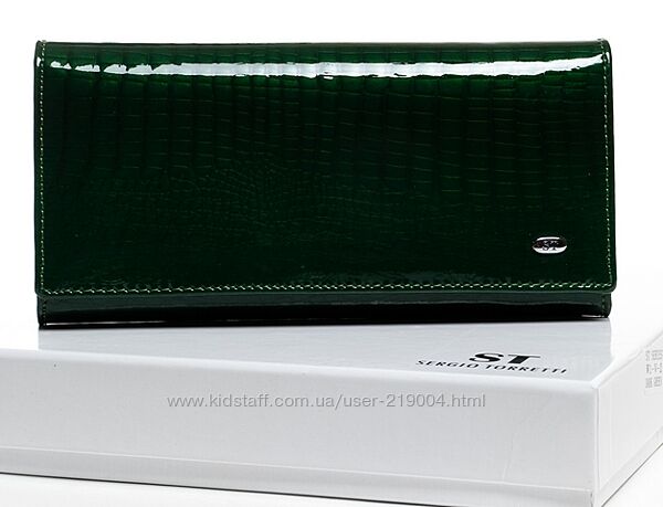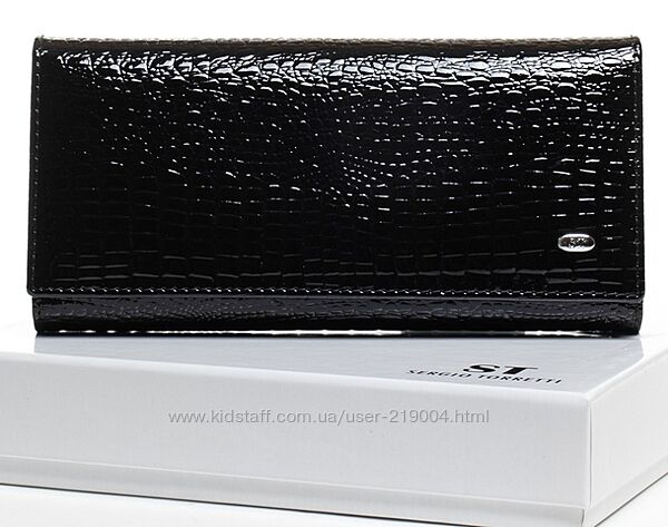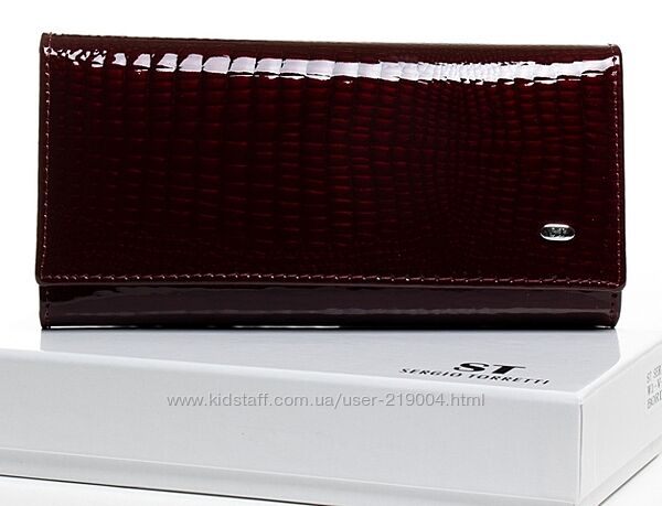 Женский кожаный кошелек SERGIO TORRETTI на магнитах. Наружная часть - лаковая кожа, внутренняя часть - натуральная мягкая кожа. Основное отделение закрывается на магнитную застежку. Внутри находятся 3 открытых отделения для банкнот, двойная монетница на защелке, карман-перегородка на молнии, один большой открытый карман и 8 карманов для визитных карт. Снаружи кошелька на обратной стороне есть плоский открытый карман. Размер (см): 18,5*9,5*3. Поставляется в коробке.В наличии большой асортимент кошельков!