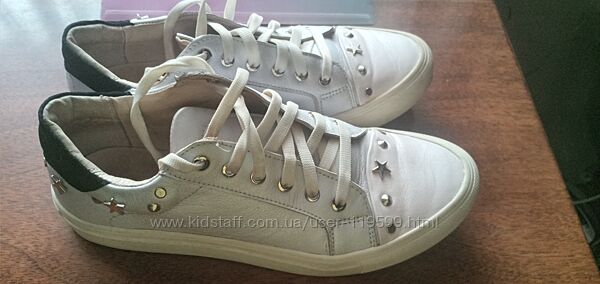 Шкіряні кеди,дуже зручні.Матеріал-натуральна шкіра.Розмір-39,устілка-25см.Взуті від сили 2 рази,виросла нога у дитини.